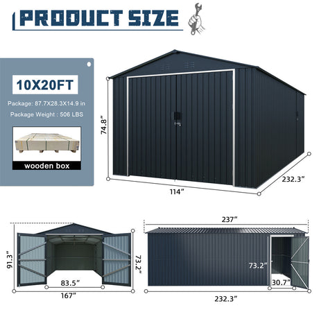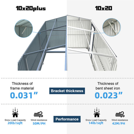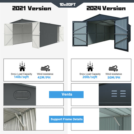 10'x20' Plus Upgraded Metal Garage Shed with Double Front Doors, Side Entry Door