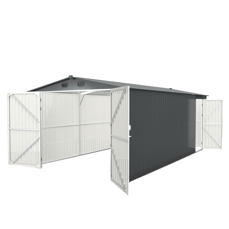 10'x20' Metal Garage Shed with Double Front Doors, Side Entry Door