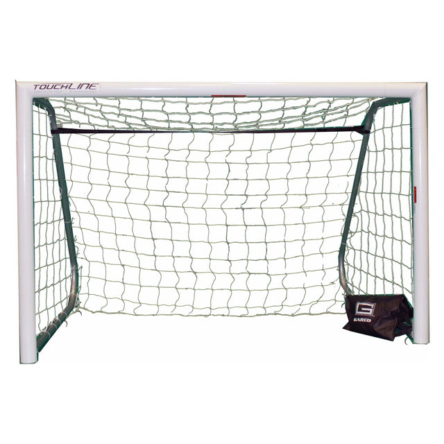 The portable SG3RD459PTW Touchline Galactico goal is the perfect addition to your soccer field for recreational play. This white powder-coated goal, measuring 4-1/2' x 9', features a 3" round frame built to withstand penalty kicks and provide reliable performance.