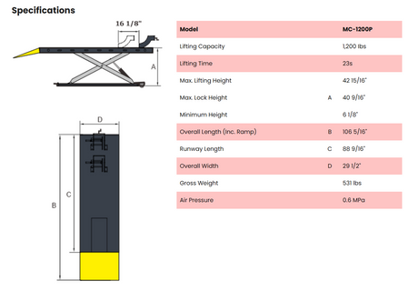 Atlas 1,000 lb. Air-Operated Motorcycle & ATV Lift