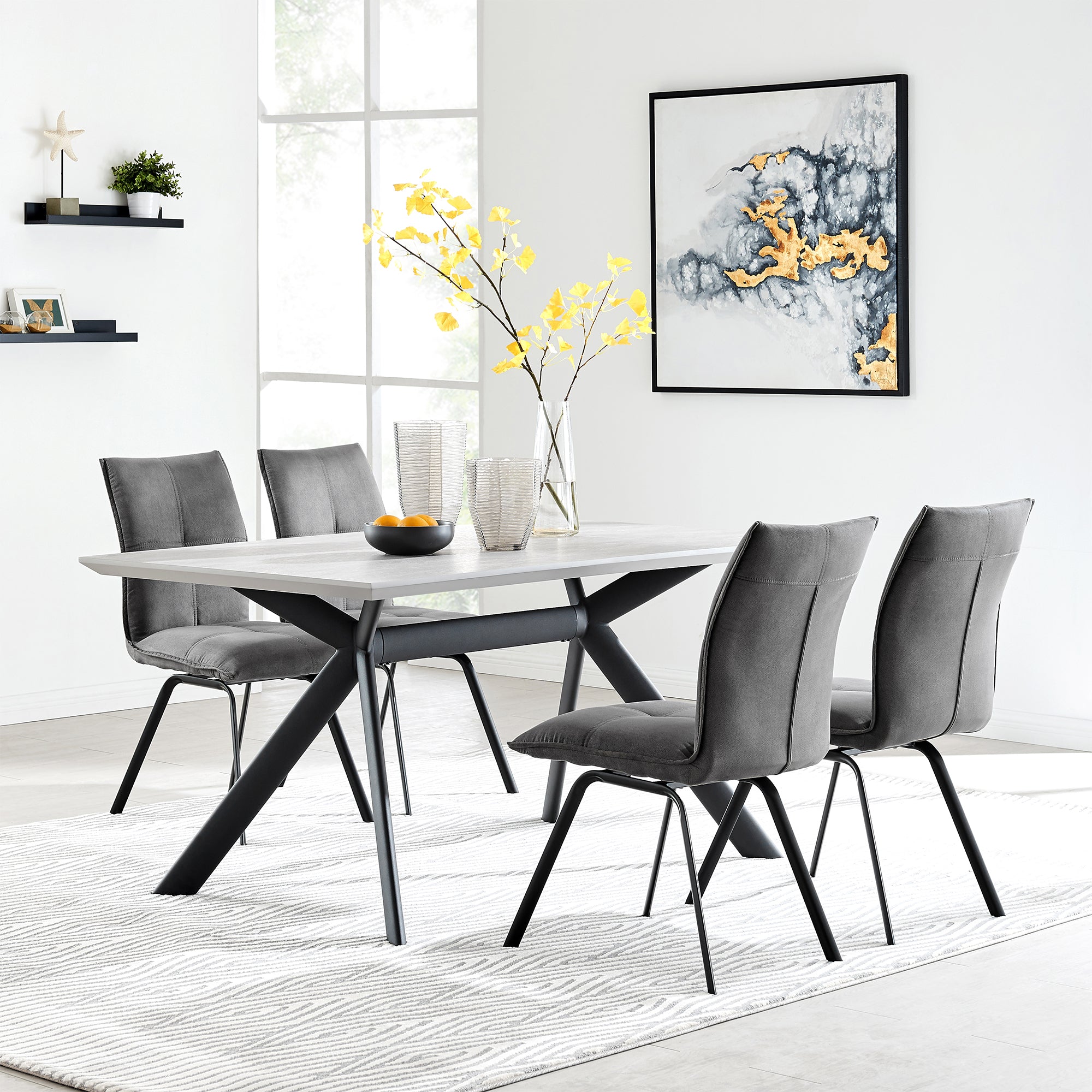 Margot/Rylee 5-Piece Dining Set - Luxurious Upholstered Comfort with Durable Metal Frame & Table