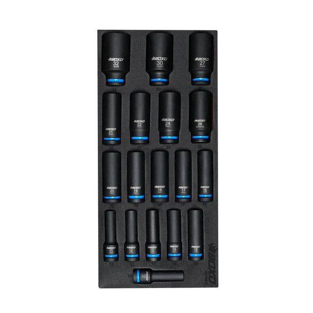 Boxo 18-Piece 1/2" Drive Metric 6-Point Deep Impact Socket Set | 1/3rd EVA Foam is backordered and will ship as soon as it is back in stock.