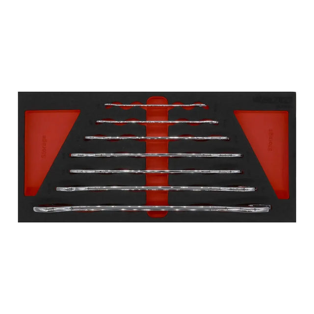 Each wrench is manufactured from industrial-grade chrome vanadium steel for superior strength and long-lasting durability, and finished with a mirror chrome coating that resists corrosion and wipes clean easily. The set is housed in a CNC-cut, two-tone EVA foam insert to provide modular storage, professional organization, and sustained workflow efficiency.
