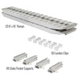 Each ramp can be turned on its side and inserted into adjustable stakes that fit standard stake pockets, ensuring compatibility with all 102" wide step deck trailers (97"–98" W inside measurement) — no modifications required.